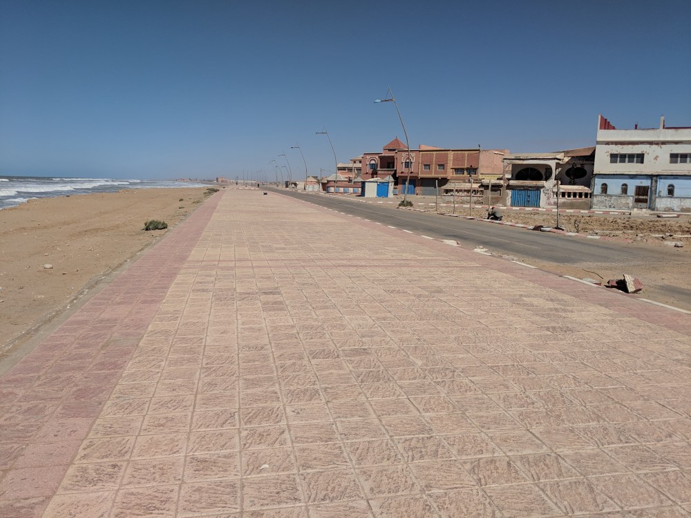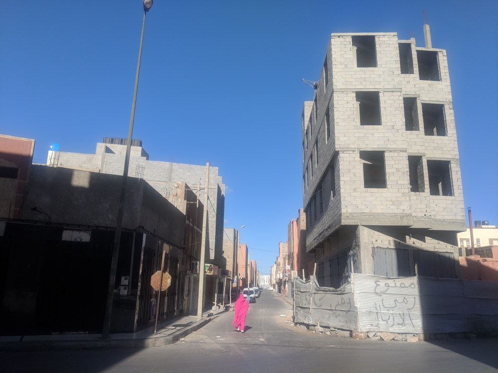 We arrived in Laayoune 1hr late. I took taxi to a hotel. Small, cheapish (70Dh) with shower paid extra 10Dh. The town seemed quiet, all buildings in brown-red-sand flavours, paled by the sun. It was quite chilly.