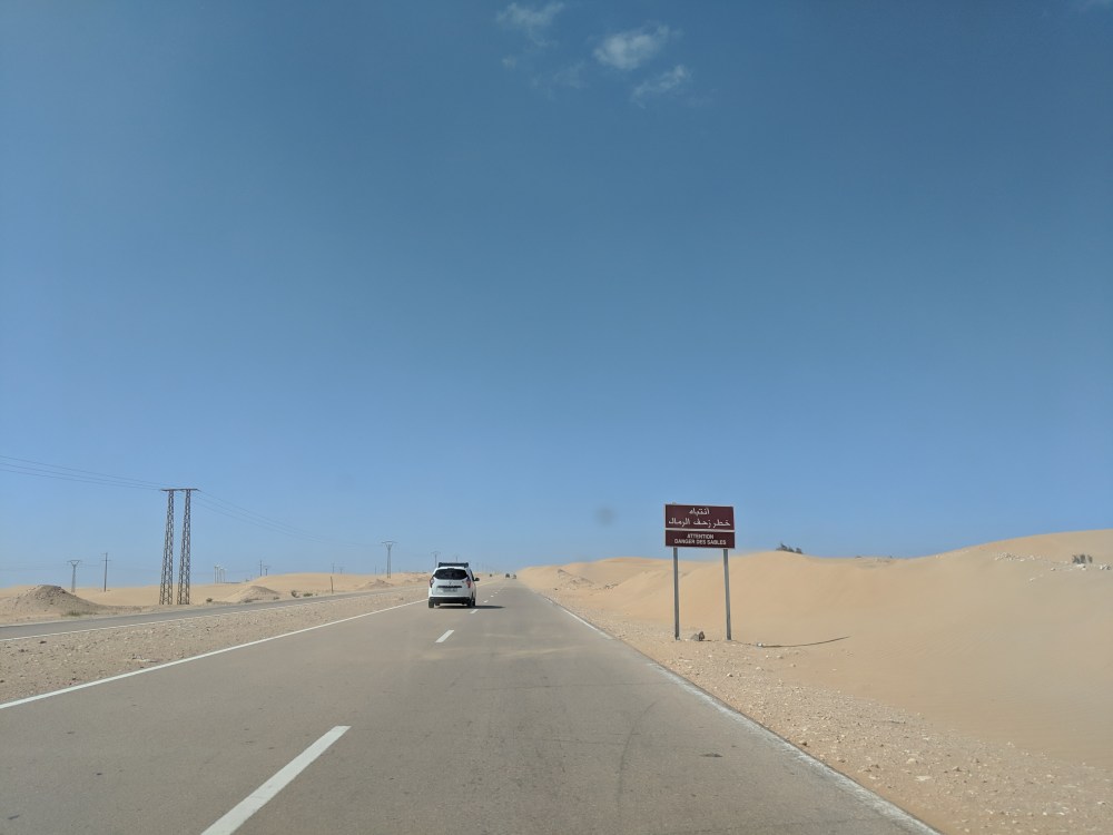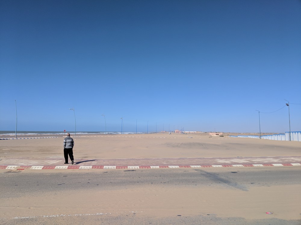 There isn’t much to do Laayoune. With so much time on my hands I decided to go to a place called Laayoune Plage, which in fact is a port. I went to a grand taxi stop and for 9Dh we set off. The wind was strong, the sand is blown on the road, there are signs warning against sand on the road, it was quite a picturesque road with dunes on each side of the road.