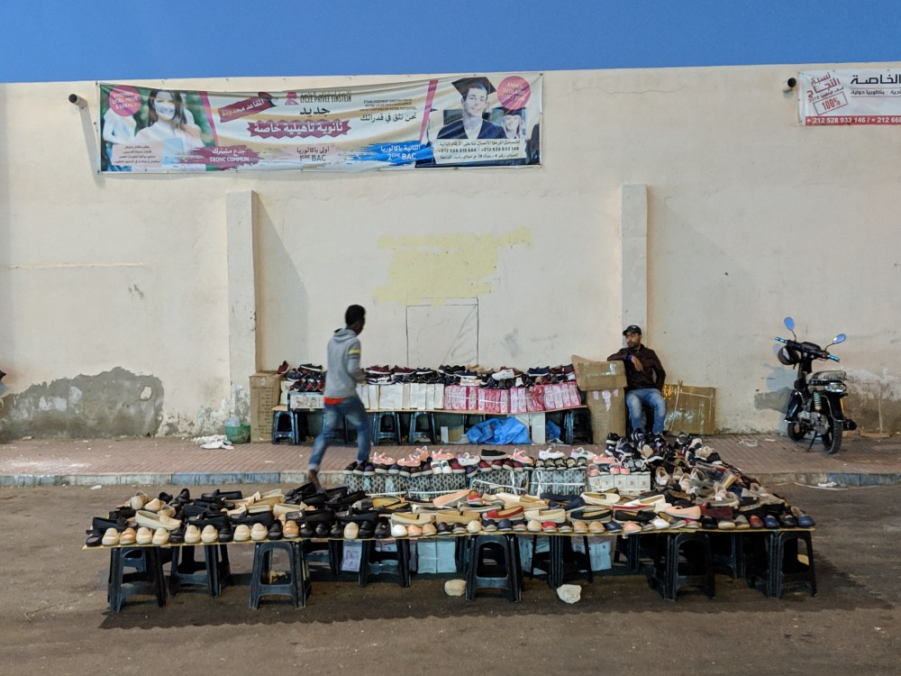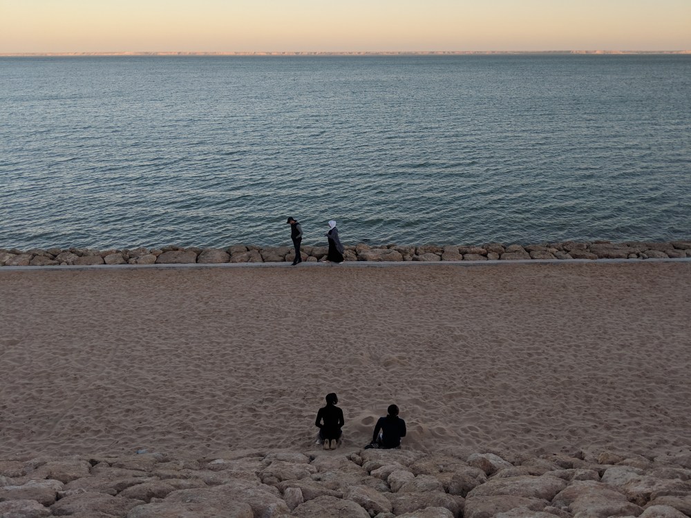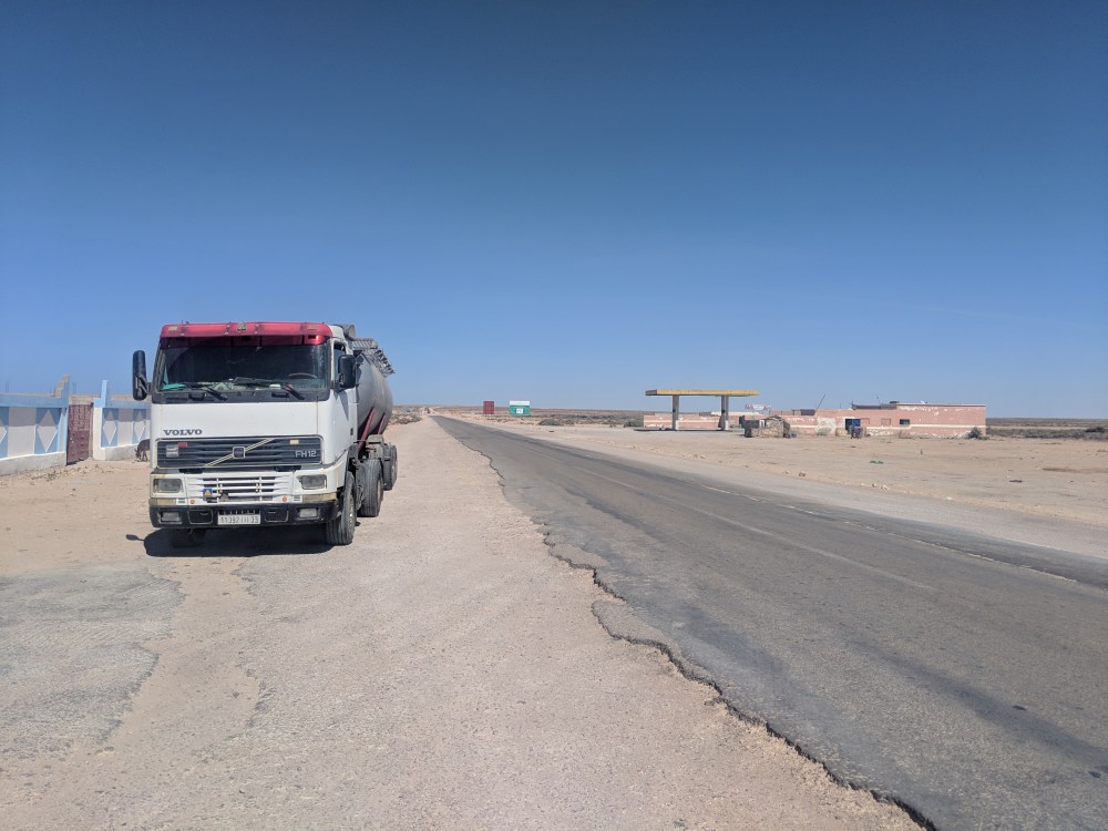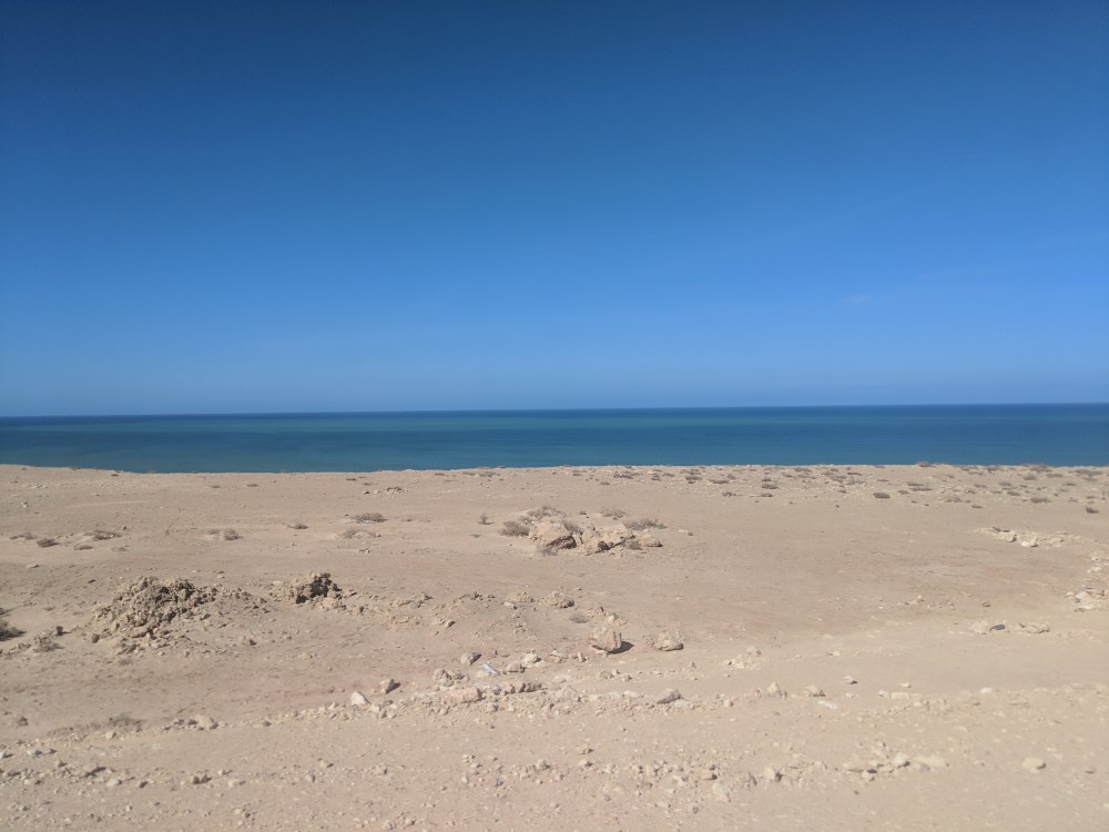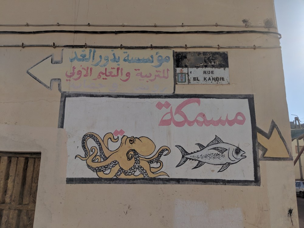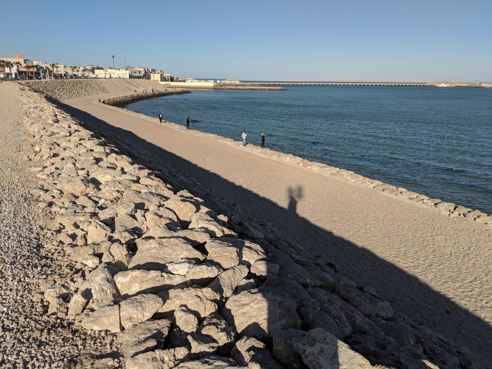 During the 2nd pit stop one man started talking to me. His name was Othman, or at least that’s how he pronounced it. We started discussing religion, names and where they come from (I claim mine has no meaning but if it does, it probably comes from Bible), which religion allows divorce and whether temporary marriages in Sunni Islam are made for specific time or not. I was getting confused on how much I can talk. Othman said he was from Sahara and when he asked me “Is this your first time here?” I didn’t know if he meant Morocco or Sahara. He meant Sahara. In Laayoune I was also confused about the language to use: the first taxi driver was responding to my French in Spanish. Here in Dakhla a waiter greeted me in Spanish. Am I disrespectful if I use or don’t use Spanish? How do I go about talking about Western Sahara with Moroccans? On the bus there was also a Moroccan couple, with whom I had a chat. They were going on holidays to Dakhla and they fed me oranges.