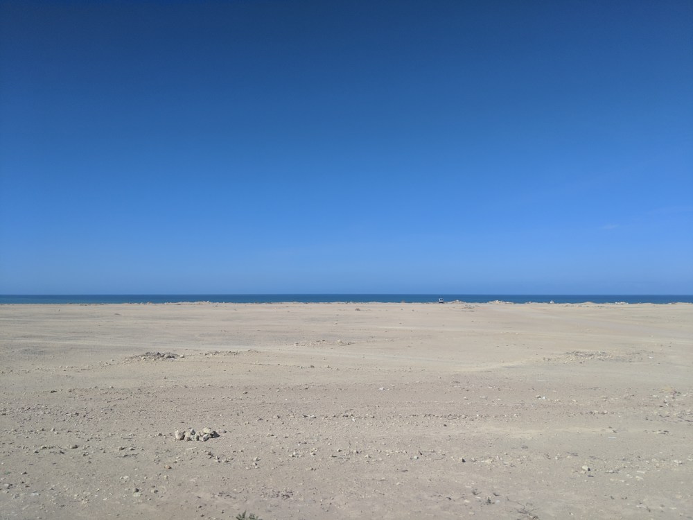 During the 2nd pit stop one man started talking to me. His name was Othman, or at least that’s how he pronounced it. We started discussing religion, names and where they come from (I claim mine has no meaning but if it does, it probably comes from Bible), which religion allows divorce and whether temporary marriages in Sunni Islam are made for specific time or not. I was getting confused on how much I can talk. Othman said he was from Sahara and when he asked me “Is this your first time here?” I didn’t know if he meant Morocco or Sahara. He meant Sahara. In Laayoune I was also confused about the language to use: the first taxi driver was responding to my French in Spanish. Here in Dakhla a waiter greeted me in Spanish. Am I disrespectful if I use or don’t use Spanish? How do I go about talking about Western Sahara with Moroccans? On the bus there was also a Moroccan couple, with whom I had a chat. They were going on holidays to Dakhla and they fed me oranges.