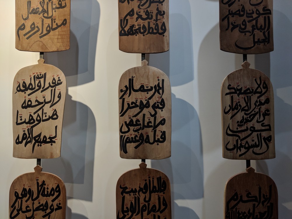 The exhibition is a bit confusing due to its circular nature, the galleries surround one another. It starts nicely with photos and some remains of earliest human life signs. But then all you see are posters with descriptions and it soon turns into a contemporary art gallery. There is a room devoted to religion and you can also see some islamic manuscripts.