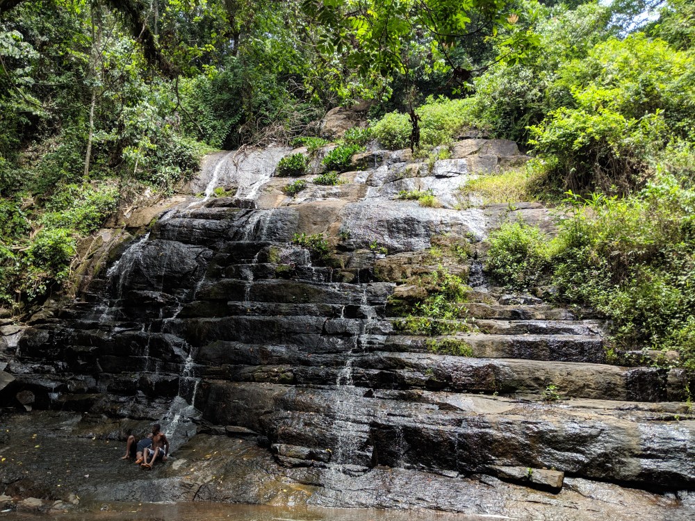 Visiting waterfalls at the end of dry season isn’t a good idea, there is barely a trickle of water. At the base there is a concrete rim that creates a possibly swimming pool but the water looks awful, a brown soup with even some water plastic bags floating in. Some boys are lying down on the rocks letting the little water that there is fall down on them. There is a rope bridge but it leads from nowhere to nowhere. From what I read in Bradt it used to be the main viewpoint to the waterfalls so I guess the site has been redesigned.