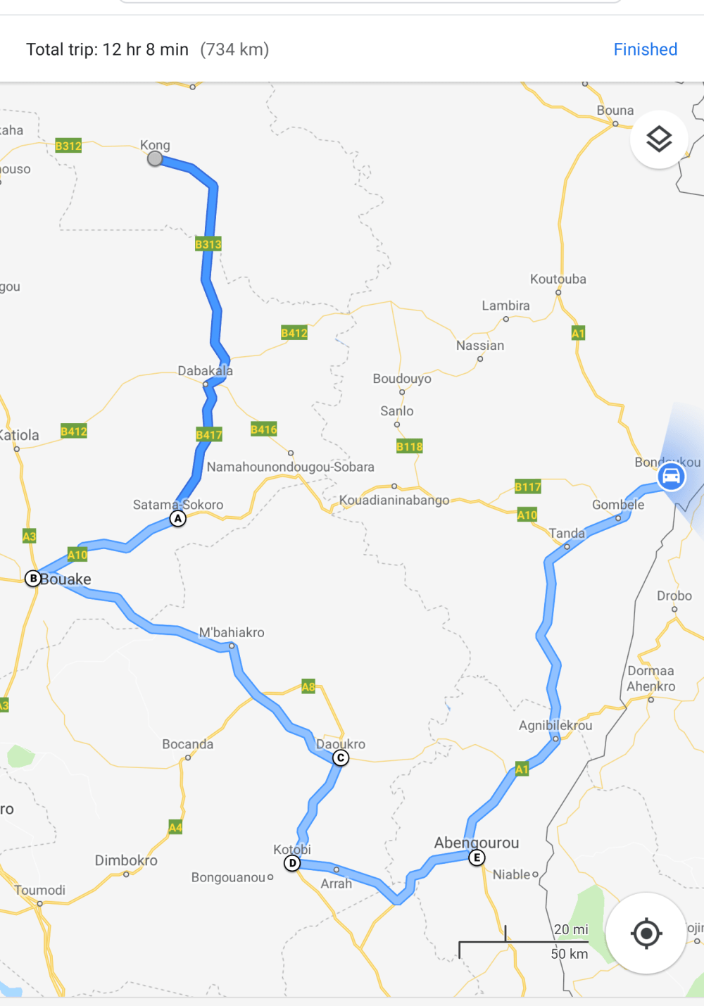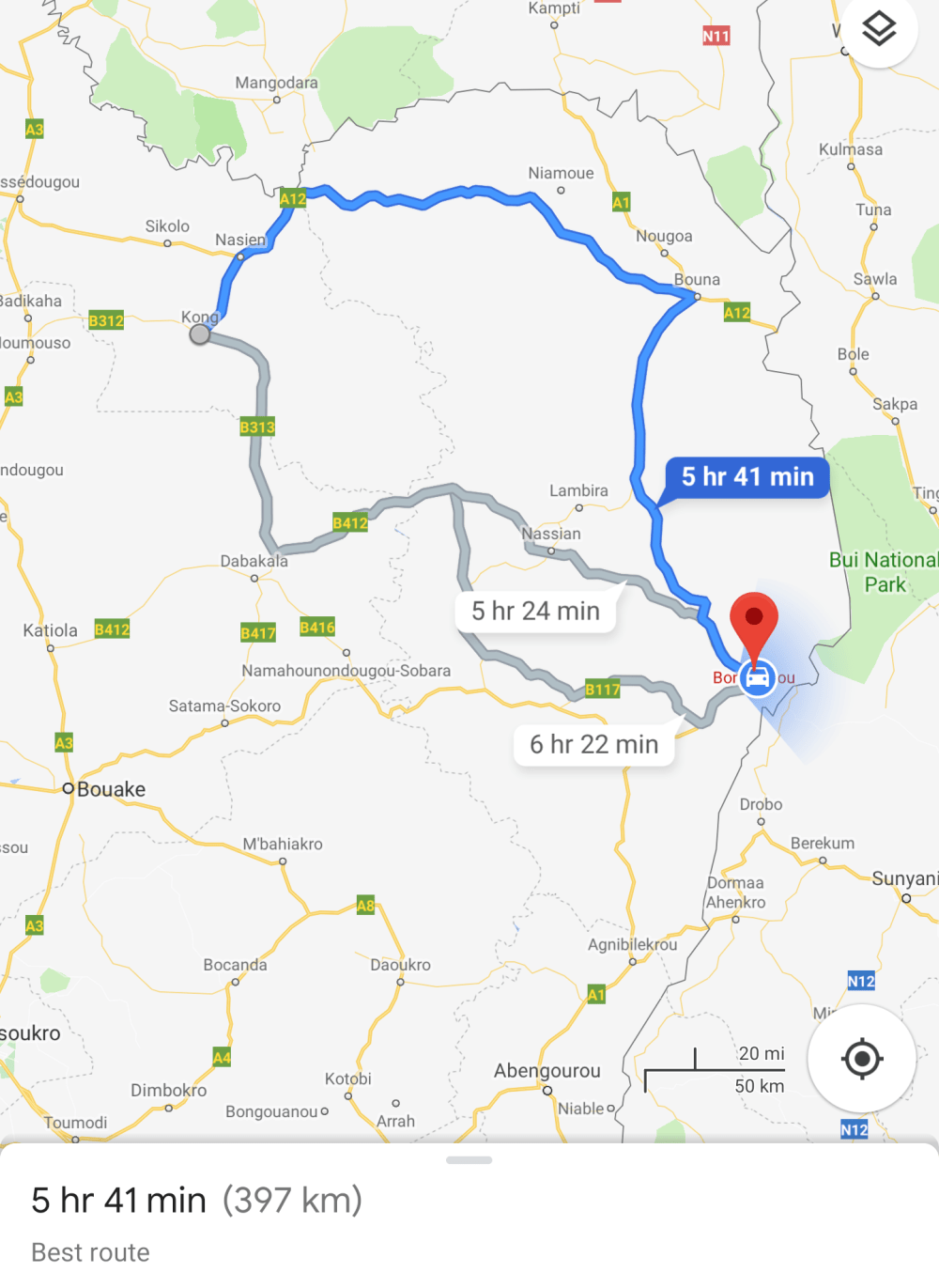 The story of the journey from Kong to Bondoukou begins as usual in Ivory Coast.