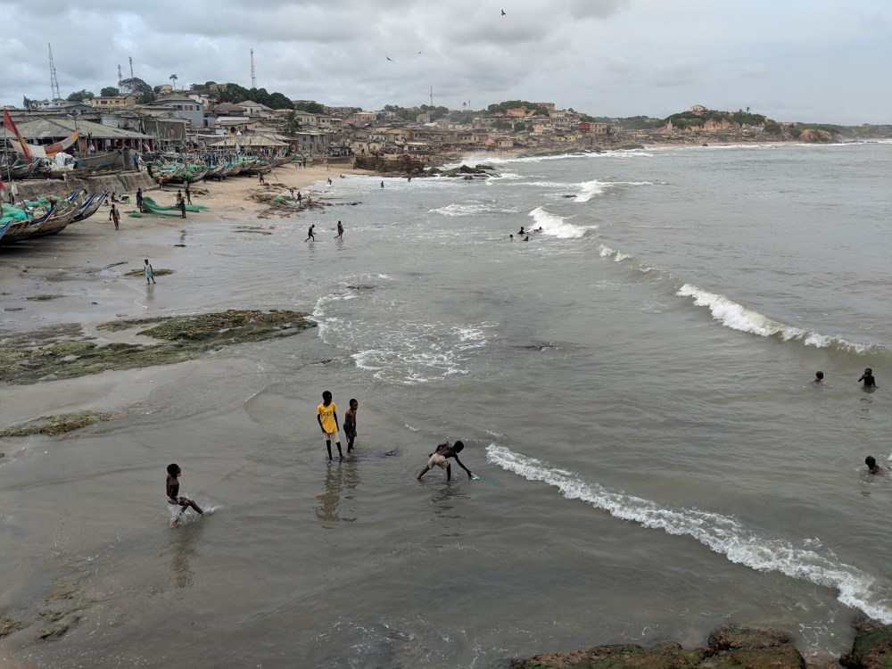 None of this happens today, am I too early for the boys? But I see tourists. Tourists! Ah, a family of four walked into a guesthouse nearby, an elderly woman walking with a huge camera, does she know what she’s doing? Then some American black tourists who are coming to Ghana to pay hommage to their ancestors. And a couple that looked straight out of Germany. That’s seven white people in one morning. There would be more.