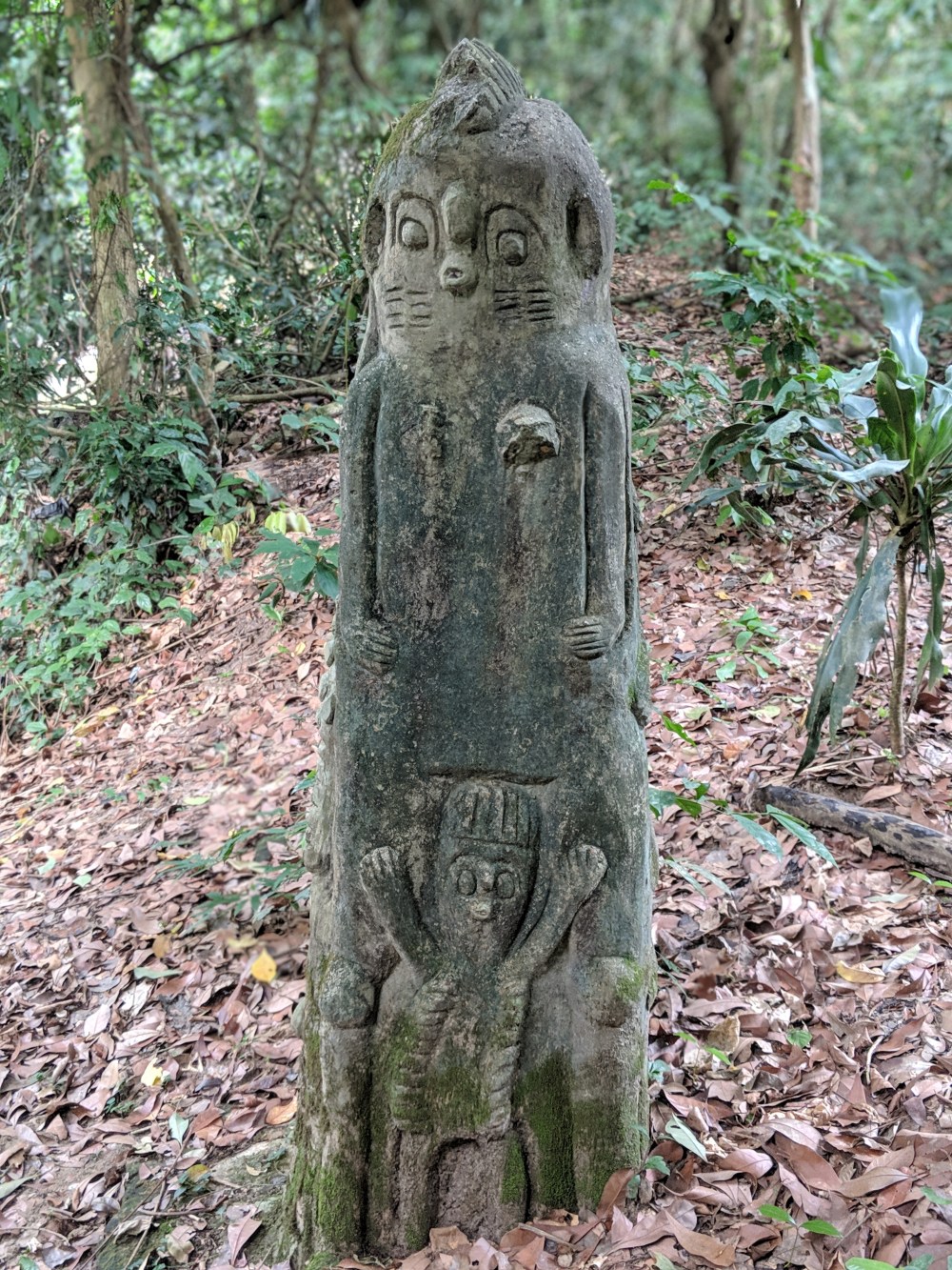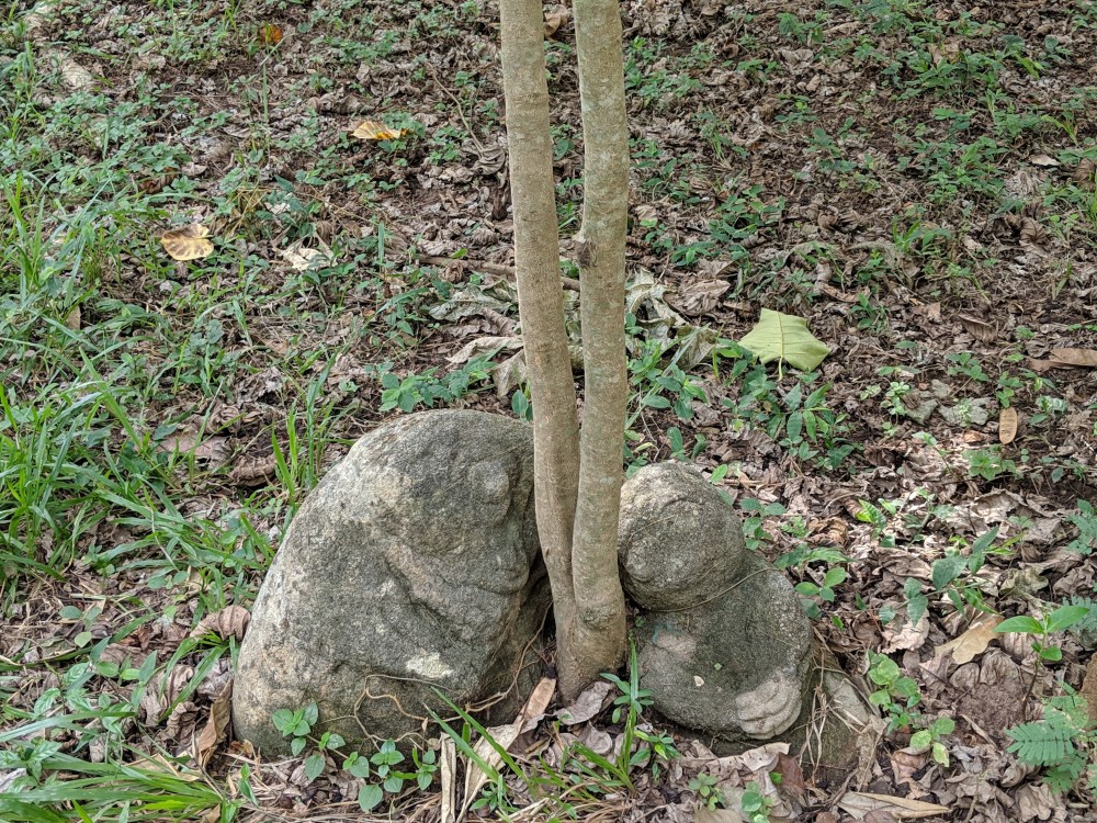 I go to see one more clearing with some statues, I enter through what looks like a throat and walk around. One pair of stones is particularly cute, they look as if with love at a growing tree between them.