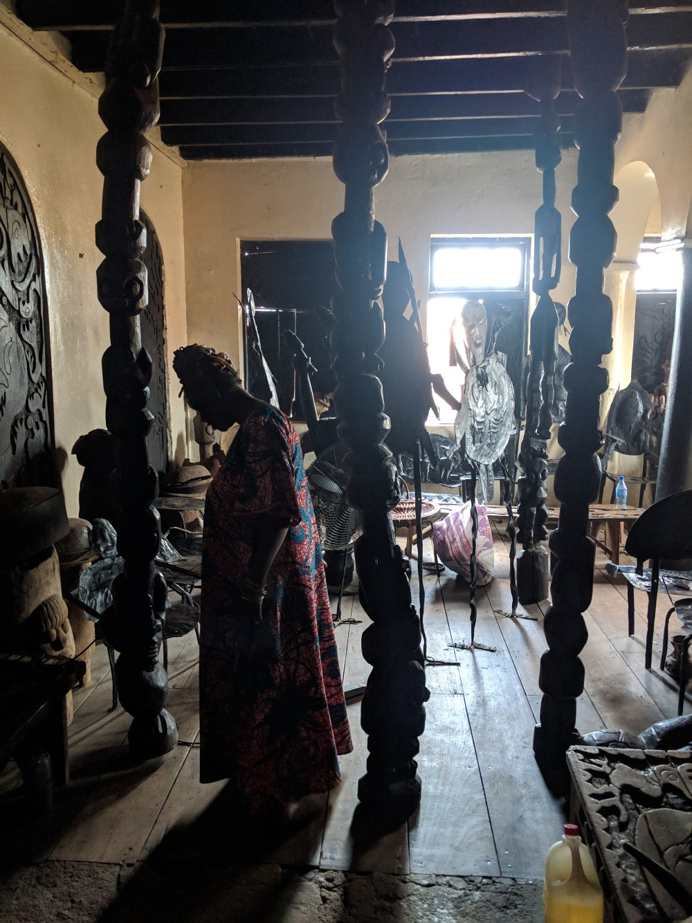 Instead I am taken to a functioning palace, complete with an ataoja – the king. I enter the premises and I see three nicely dressed men and I wanna take picture but first I ask if I can look around, they tell me to ask the king. The king is sitting under the arcades, on a wooden, well, throne. I’m not sure how to behave in front of a king so standing I explain my mission, the king doesn’t speak English so a woman standing next to him translates and speaks back to me. I’m allowed around.