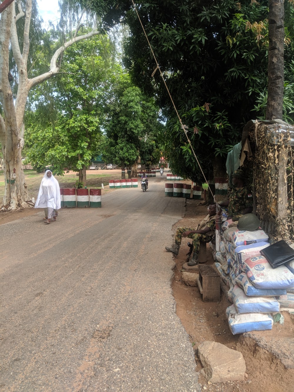 There were not many checkpoints but at one I was called out, a soldier said he had to inform another checkpoint ahead that I was coming so we went to the 20th batallion barracks, where my passport was checked, a man went inside and came outside and said we could go.