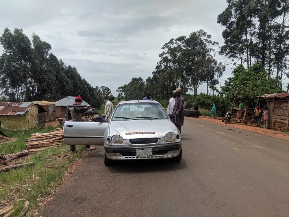 The car to Gembu was parked a few hundred meters away from the guesthouse on the way to the roundabout. It was about 20-year-old Toyota Corolla. Only a pair of doors. I was almost the last passenger, we waited for one more. I saw there was only rice and beans to eat and I passed. I ended up very hungry. I was in fact looking for coffee, let it be nescafé but the only place nearby was packed and shut. Ramadan.