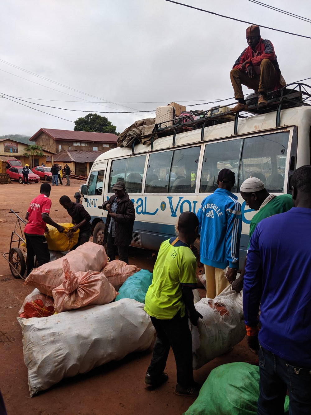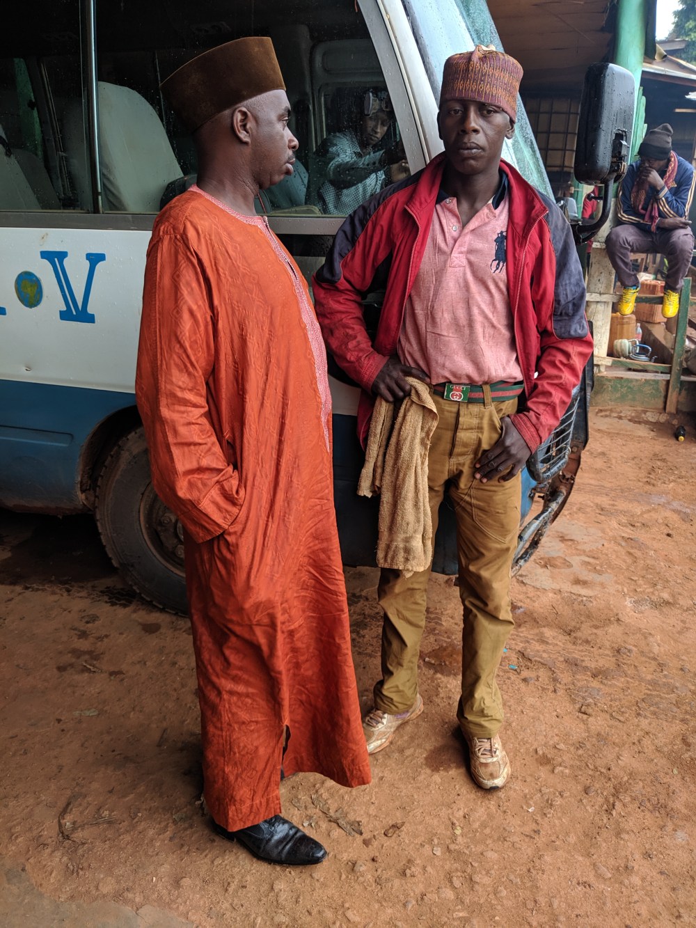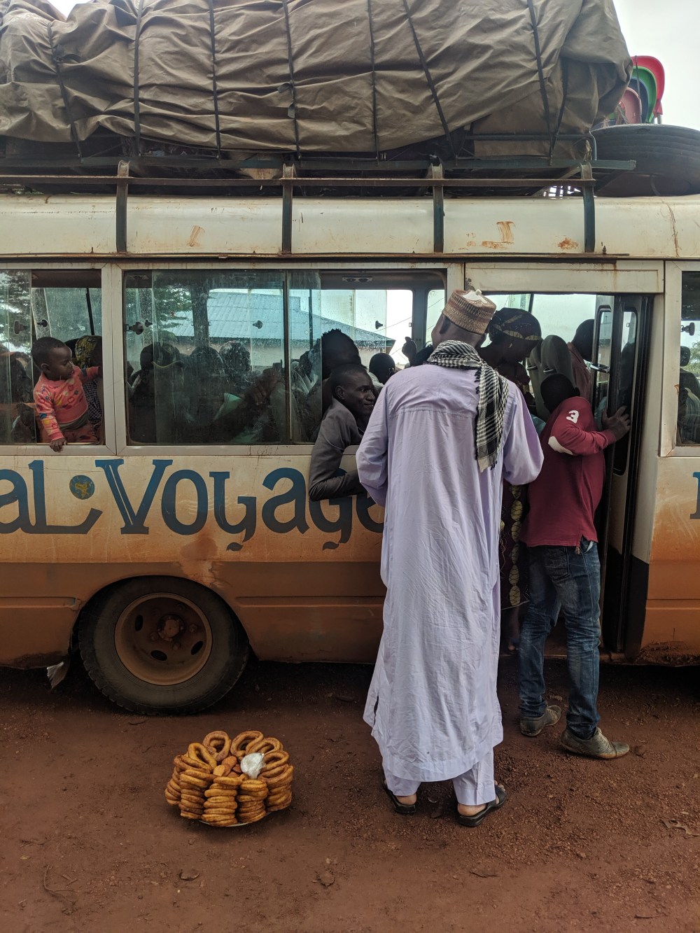 We departed at 9:30am. I asked a man who spoke English to me why – he thought it’s because some passengers have not arrived yet because of Ramadan, it’s because the bus in Ramadan likes to arrive after dark so people can get off it and eat but it simply turned out another bus was coming from a town of Bafoussam in the South and people from the bus were joining us.