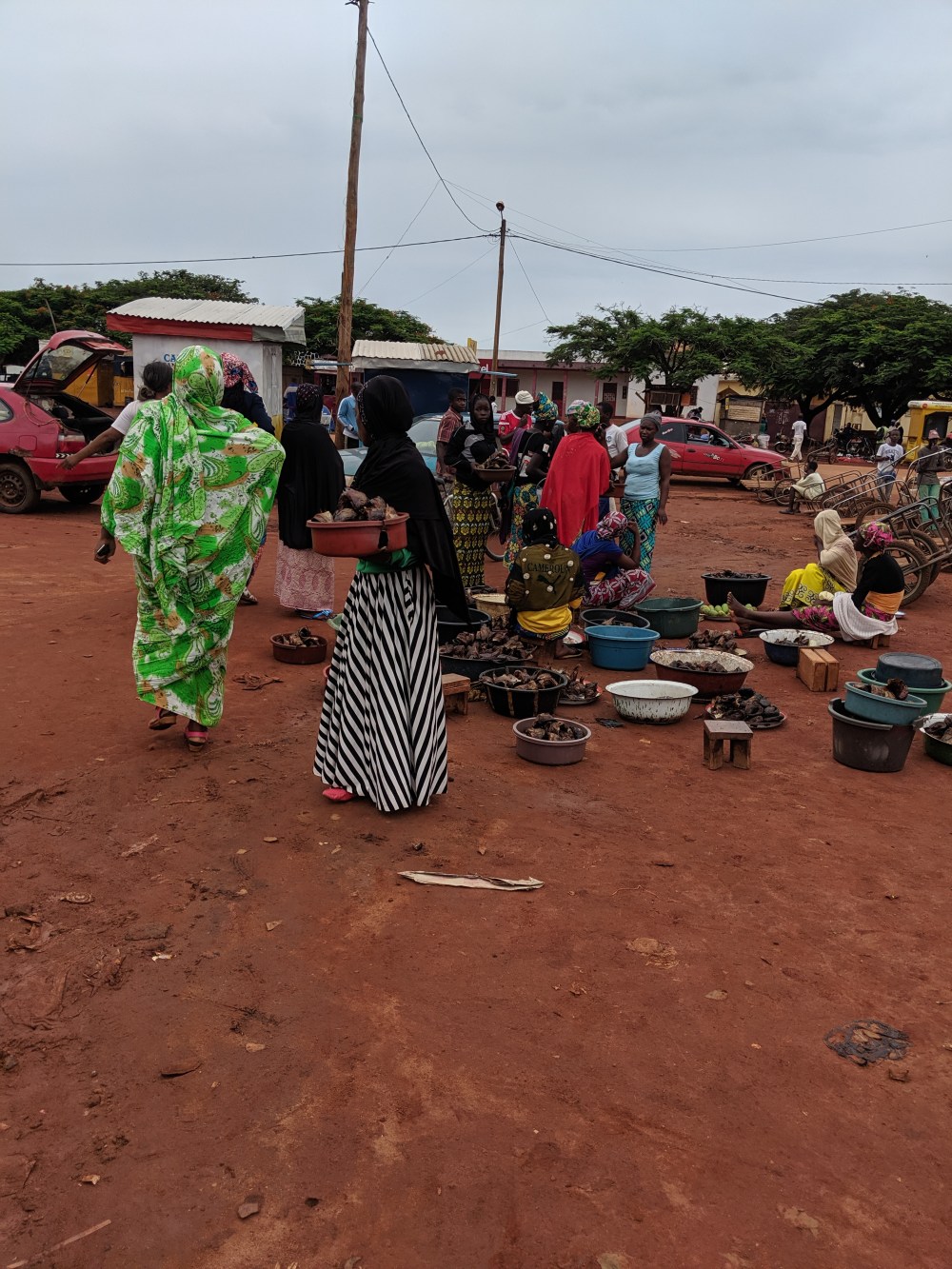The 110kms to the first town, Tibati, we covered in just below 5 hours. There we stopped for food. First all I saw was women selling dry fish so I bought a fresh bread roll from a boy but then I saw a chop joint and there I had corn fou fou and ndole. Ndole was delicious, bitter and nutty. Bradt Guide to Cameroon says it’s a stew of manioc leaves and pistachios. Not sure if what I really had were pistachios, the nuts were well ground but nevertheless it was very good and cost 500cfa.