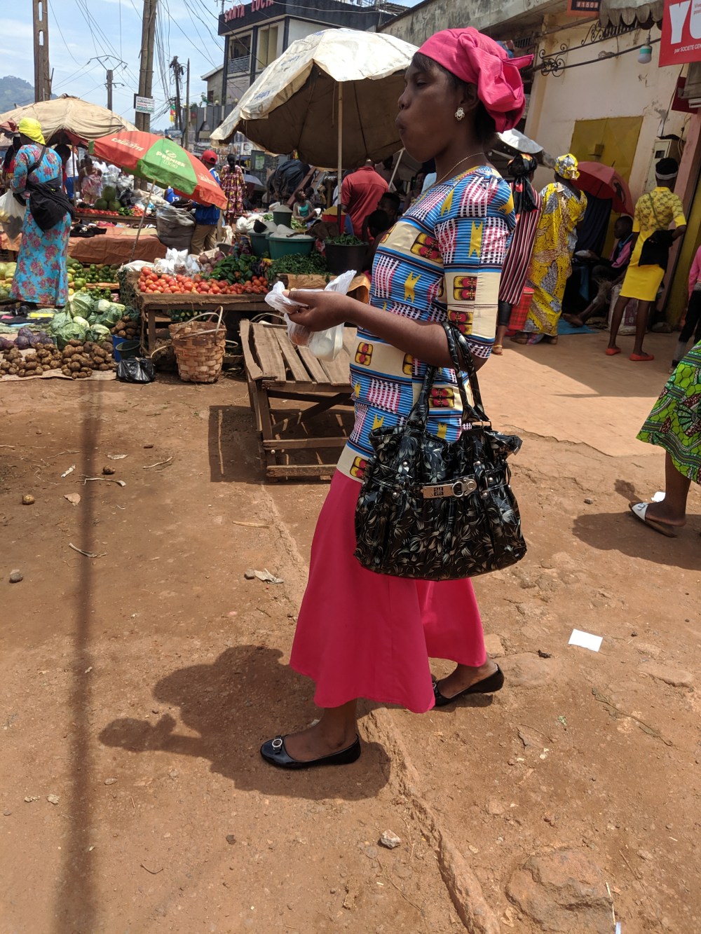 After the mass I hanged around the entrance and snapped some photos. Next door was a market of greens. I snapped some photos there too when a woman saw me and started gesticulating towards me. I didn’t pay attention to that, I was not really taking pictures of anyone in particular, just the general place but when I was about to cross the street she followed me grudging that why I don’t ask for permission, that those photos end up on social networks, in newspapers. I showed her the photo on which she featured. She didn’t even recognise the place she said I showed her another market. Obviously she couldn’t even recognise herself on the pic she was so small. I told her that with a phone camera nothing can be done but she said “no, you can do everything, it’s an iPhone I know.” Well, I left her already missing Nigeria, where noone minded photos.