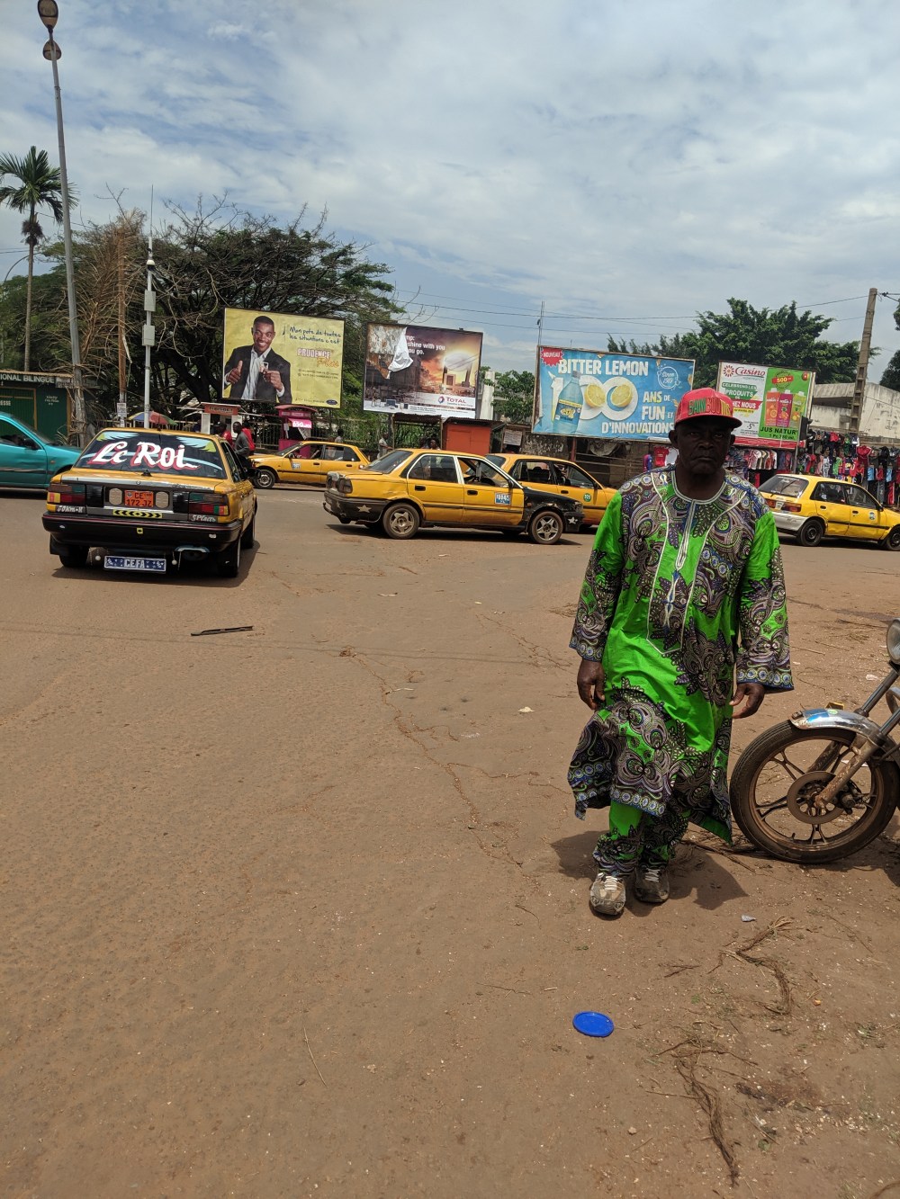 The motos waiting at the station didn’t want to go to rond point Nlongkak for less than 500cfa. The solution to such is usually quite easy: walk out of the station compound on the street. The first moto wanted 300cfa and I took it.