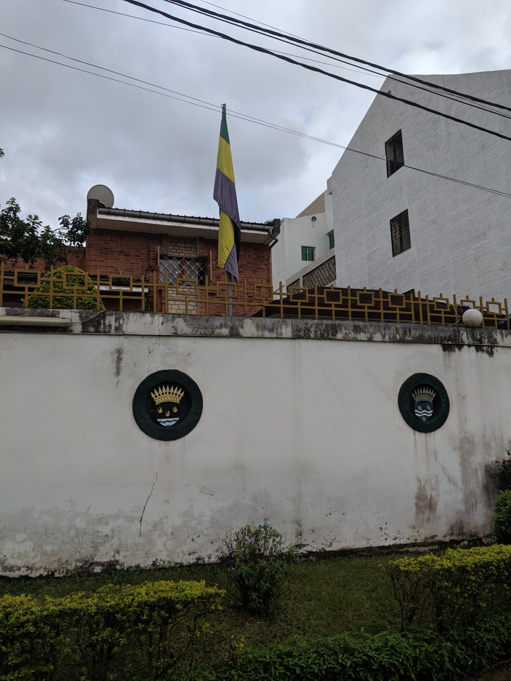 Then I went to Gabon Embassy. Of course no moto driver knew where it is so I used Google Maps to direct him. 250cfa. I put a shirt with short sleeved and the other pair of shorts, the clean ones. The embassy has no sign, only the flag marks the spot. Can you name the colours of Gabonese flag?