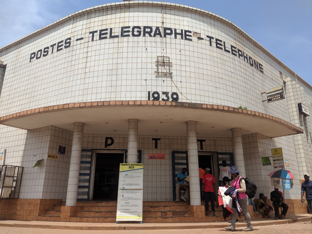 First stop in town: post office. A man was selling postcards for 500cfa and he did not want to bring the price down. He said he was buying them for 400cfa. The stamps were cheap at 250cfa.