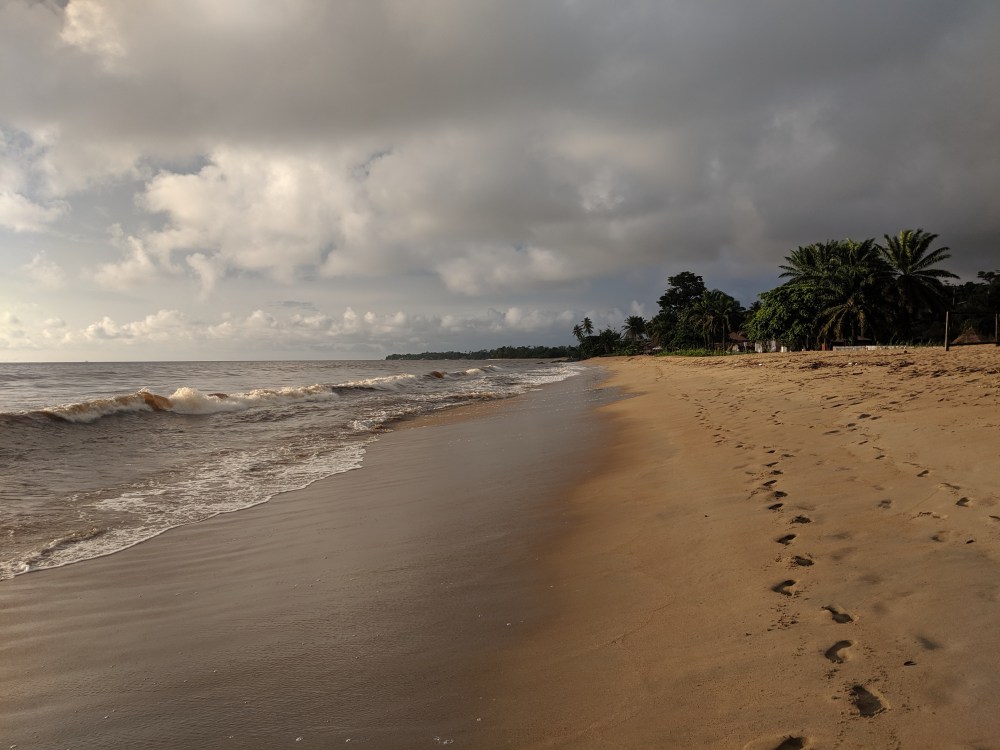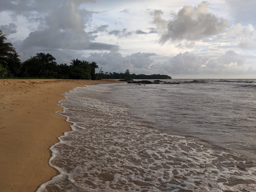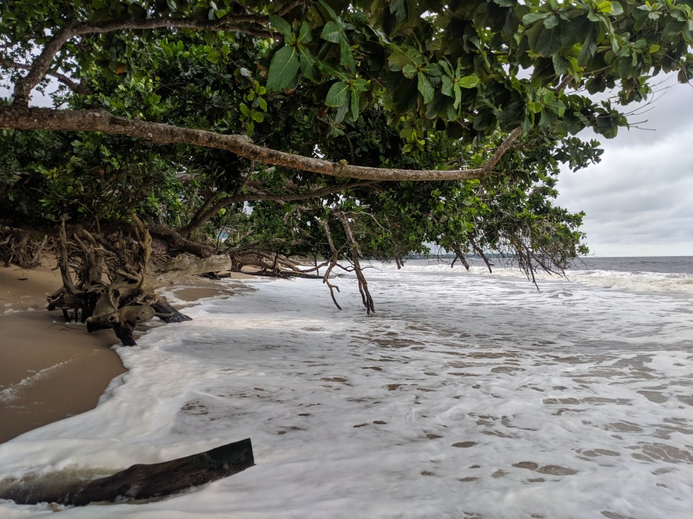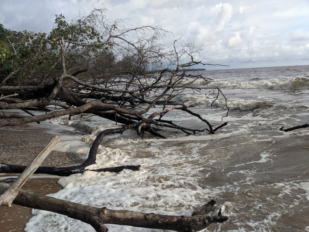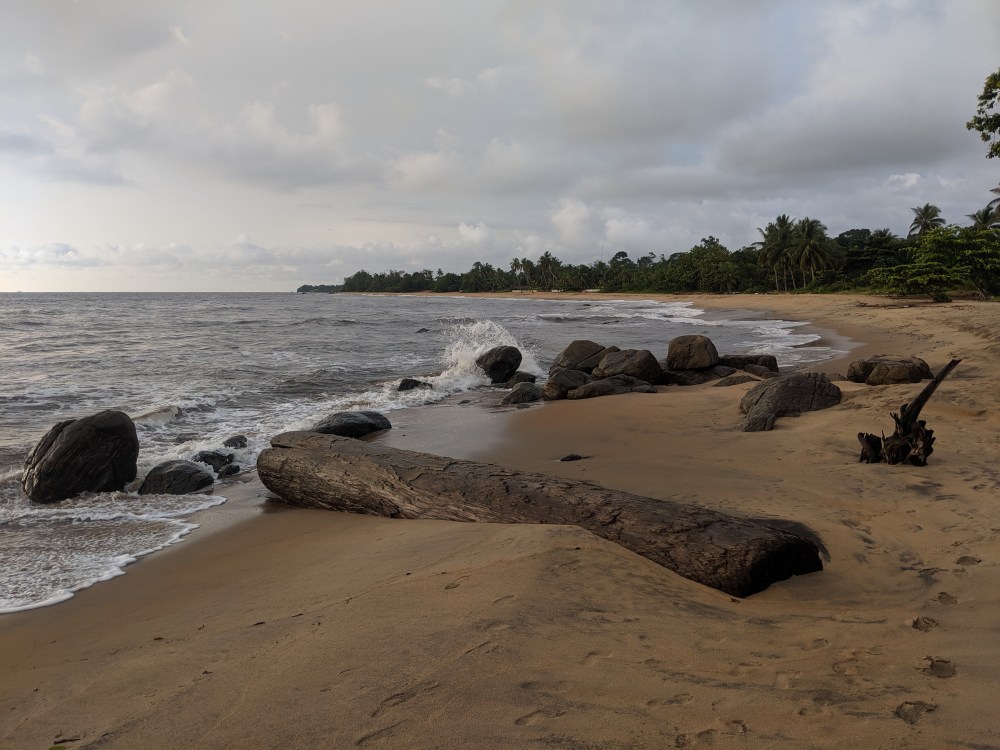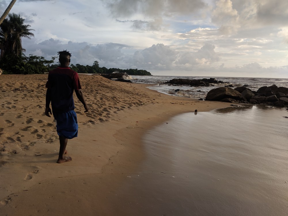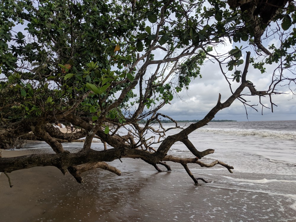 And then after maybe 1-2kms where the sand takes over the path was covered by fallen trees. I had to either manoeuvre among the fallen trunks or wad into water knee deep (of course I had my passport in my shorts because Cameroon) to go around the trees. It’s as if the water went so deep into land that it washed away the shore. There were even some houses fallen apart due to the destructive nature. Wow. Climate emergency indeed.