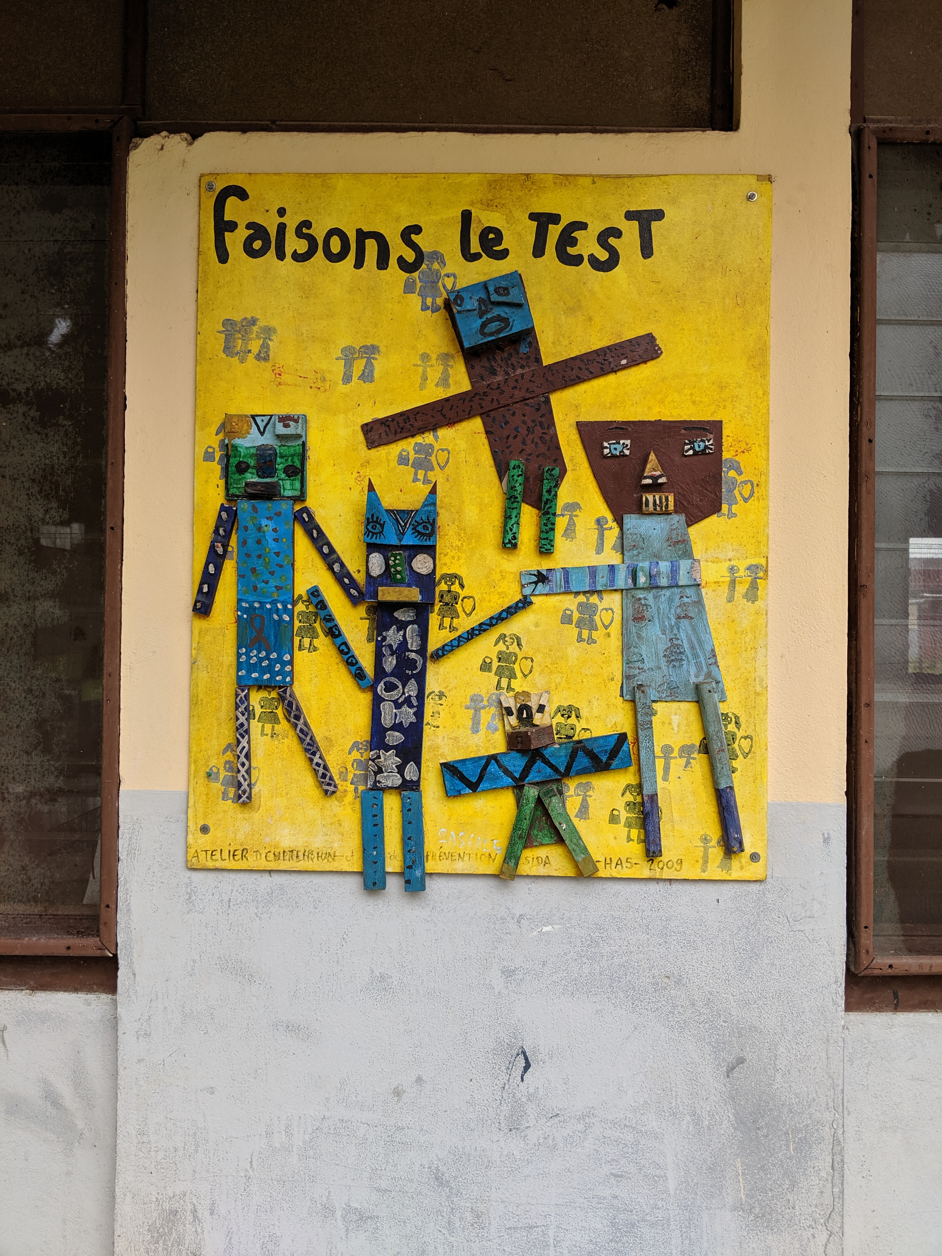 I walked back to where the taxis were being hauled and decided to walk a bit up the road and catch them before they reach the roadside crowd and perhaps there would be an empty taxi that would take me as a first passenger and then collect others matching the road to the hospital. It worked. 300cfa – normal price is 100cfa – but I didn’t care. I was in. I even complained to the taxi driver that noone wanted to stopped and he told me I should lure the taxi drivers with a higher price. Right.