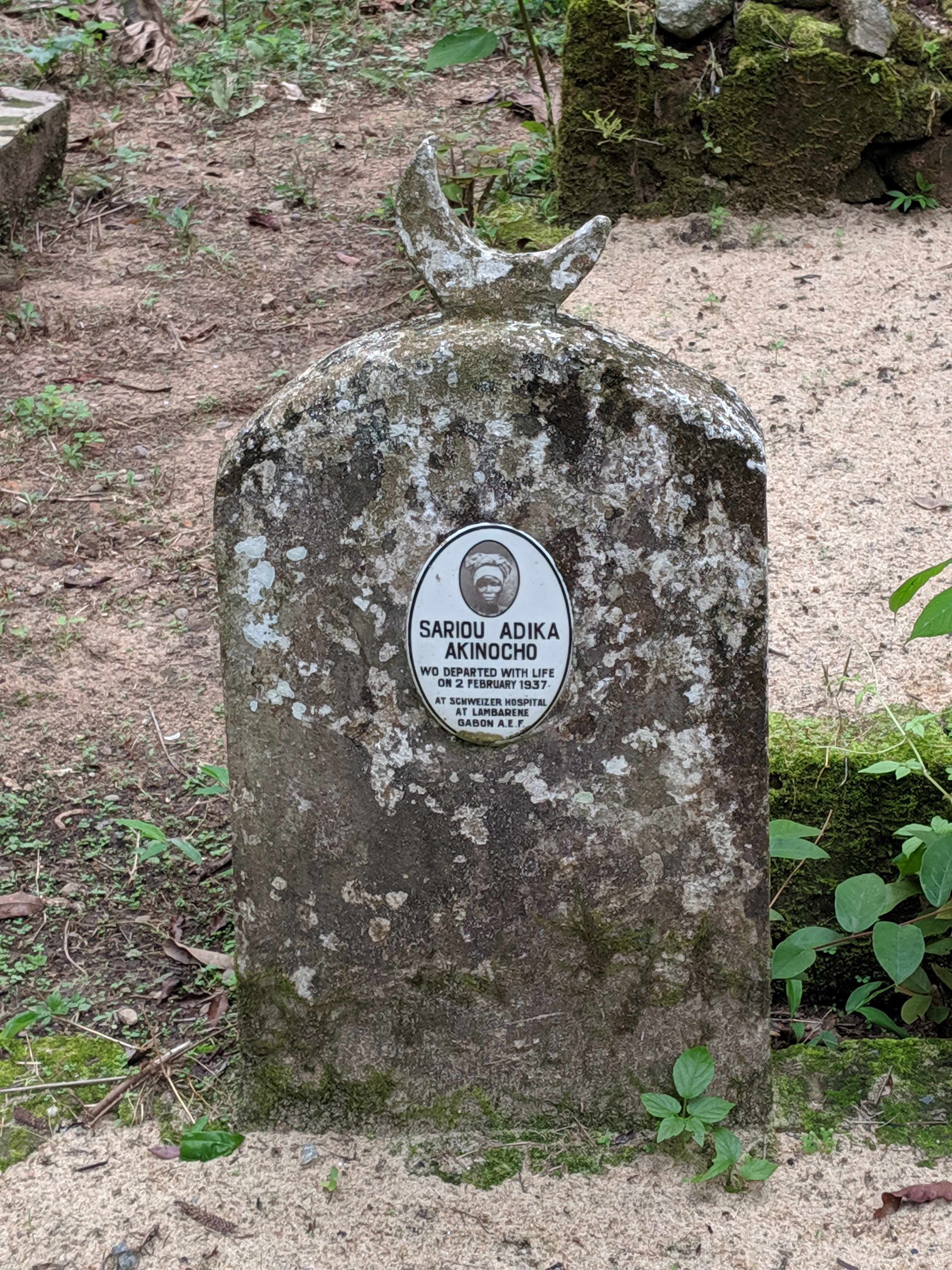 And I liked the area so much that I decided to walk back to quartier Isaac, where I stayed, and stay the whole day in Lambaréné.Right in front of the entry to the hospital complex there is a palm groove, quite atmospheric not only because of the graves that are there.