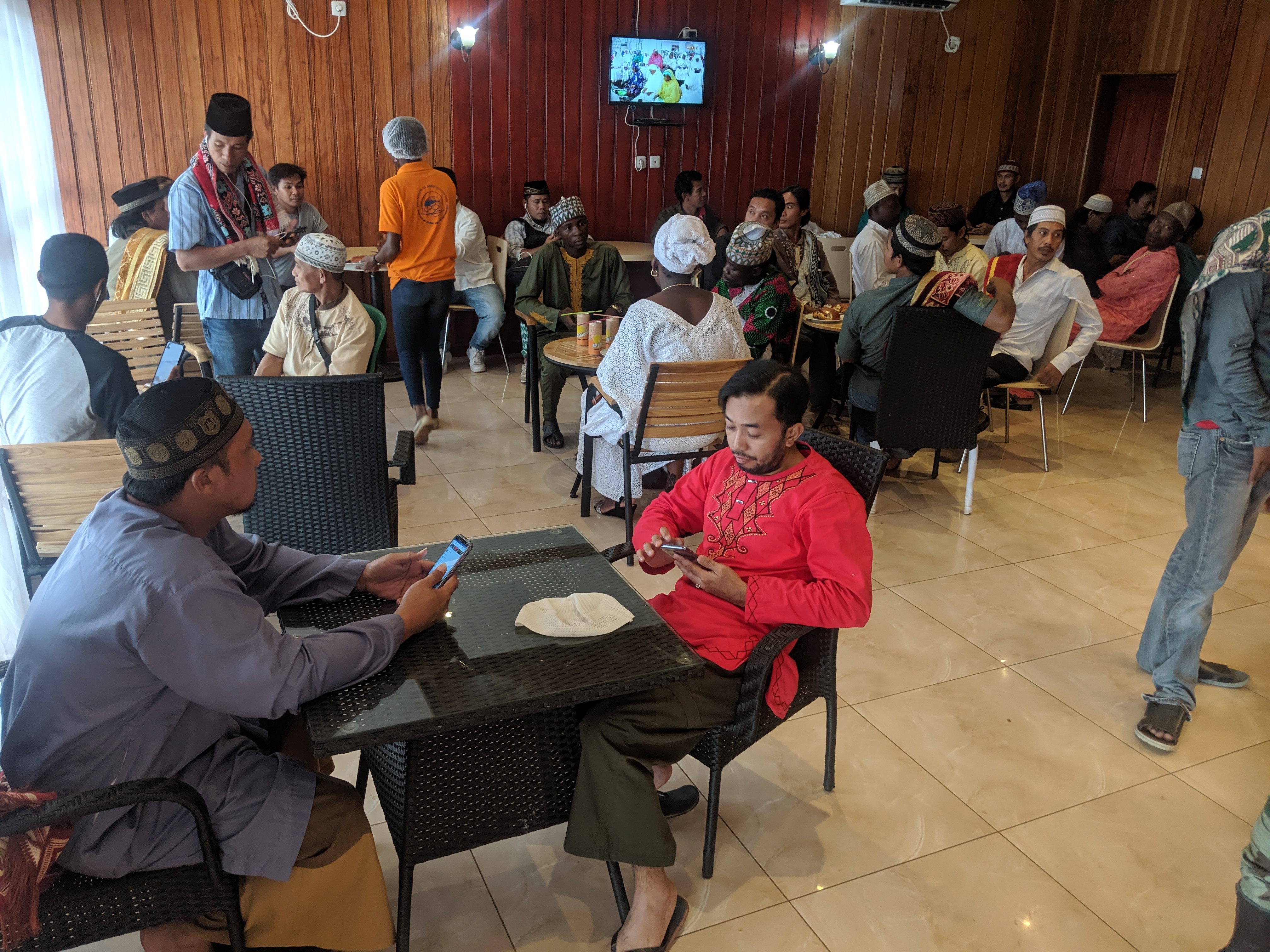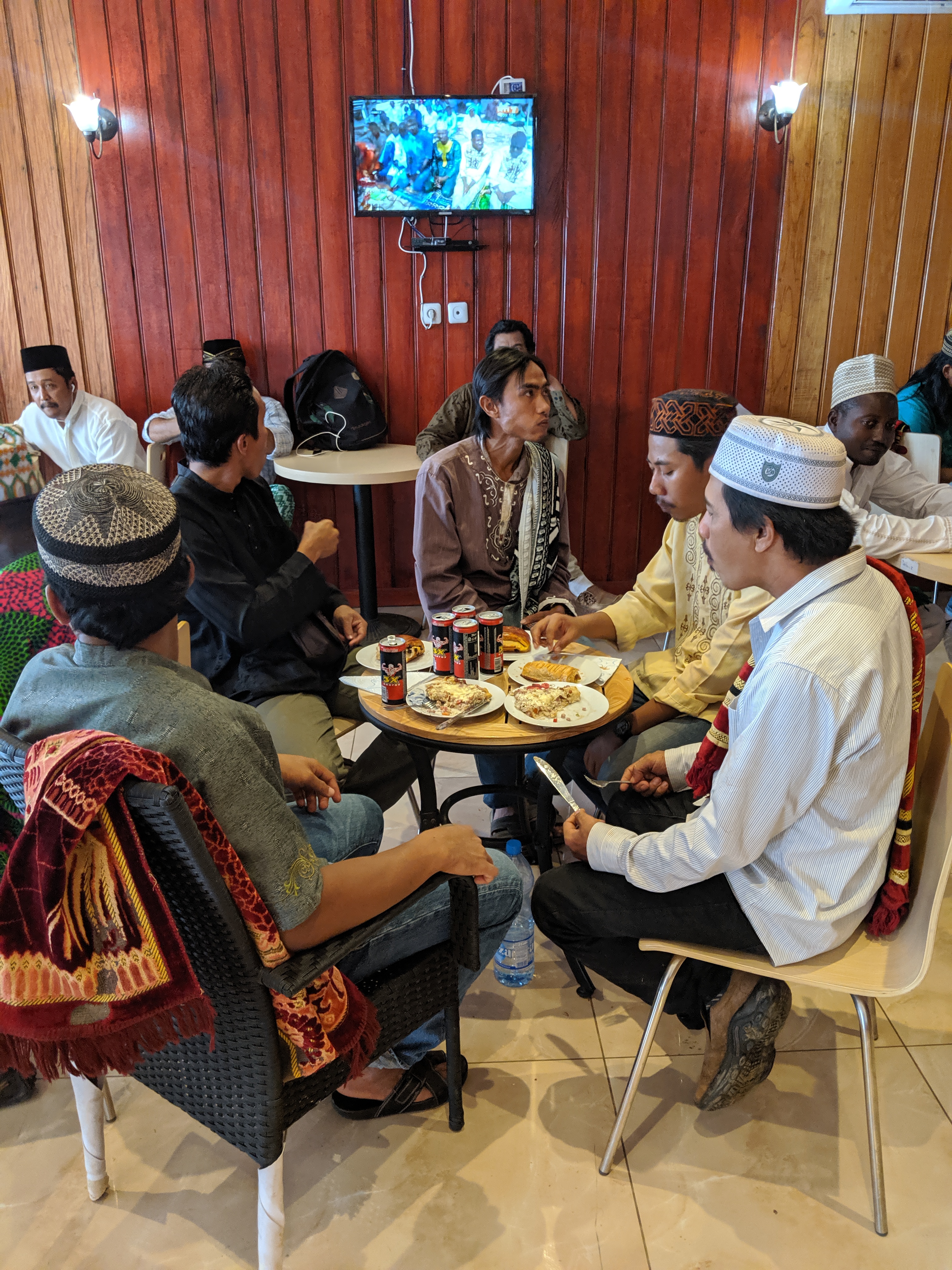 The Ramadan ended and the Muslims were taking advantage of it. But where were these guys from? They didn’t exactly look Malaysian. Some of them looked like stereotypical Genghis Khan. Mongolia? Does Mongolia have Muslims? For sure. I thought maybe Uzbekistan or Turkmenistan. I asked one but he ignored me. And because the queue and chaos were on, and the beautiful big coffee machine “didn’t have water” I went out and had a baguette with avocado salad. After some time I came back and asked men sitting at a table, where they from. Indonesia. Voilà.