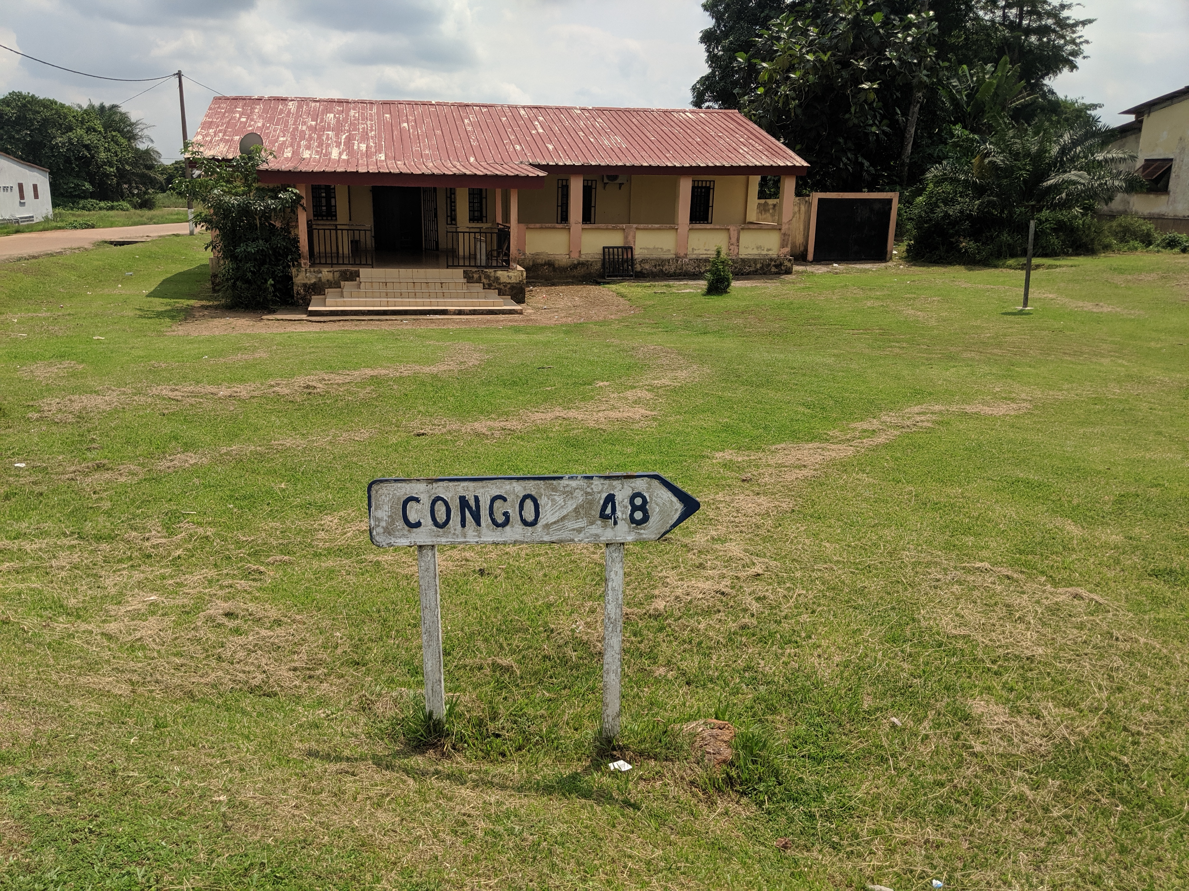I walked from one roundabout to the other and saw a sign that surely must have been put there for selfies. Like the coolest roadsign ever. Congo 48. I love road signs which point to countries and my favourite one so far has been one in Botswana that points straight to Zambia and right to Zimbabwe. Now I also have Congo 48. I snapped some selfies but the sign was quite large and the selfies were difficult to make. I went on and found a bar that only had one type of beer, 33, in 0.33l bottles but with promotion of buying 3 for 1000cfa. I joined the people sitting there with sets of 3 bottles. Across the road there was a cafeteria which also served food. I had rice with fish.