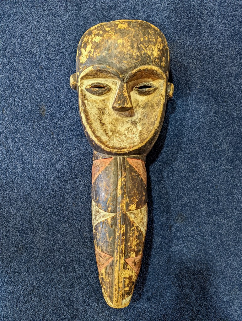 Couple of weeks ago I was in Hannover on a Saturday and there was a Flohmarkt. And on that Flohmarkt there was a man from Senegal selling “African” trinkets. Among them wood carvings and Benin bronze replicas. I liked one mask especially and the man said that it’s a Yoruba mask. Granted, I should maybe be now able to tell where a mask comes from but I fell for it. I don’t think it was some sort of deliberate scam, I just think the man didn’t know himself where the mask comes from and he was just saying what he thought might be true.